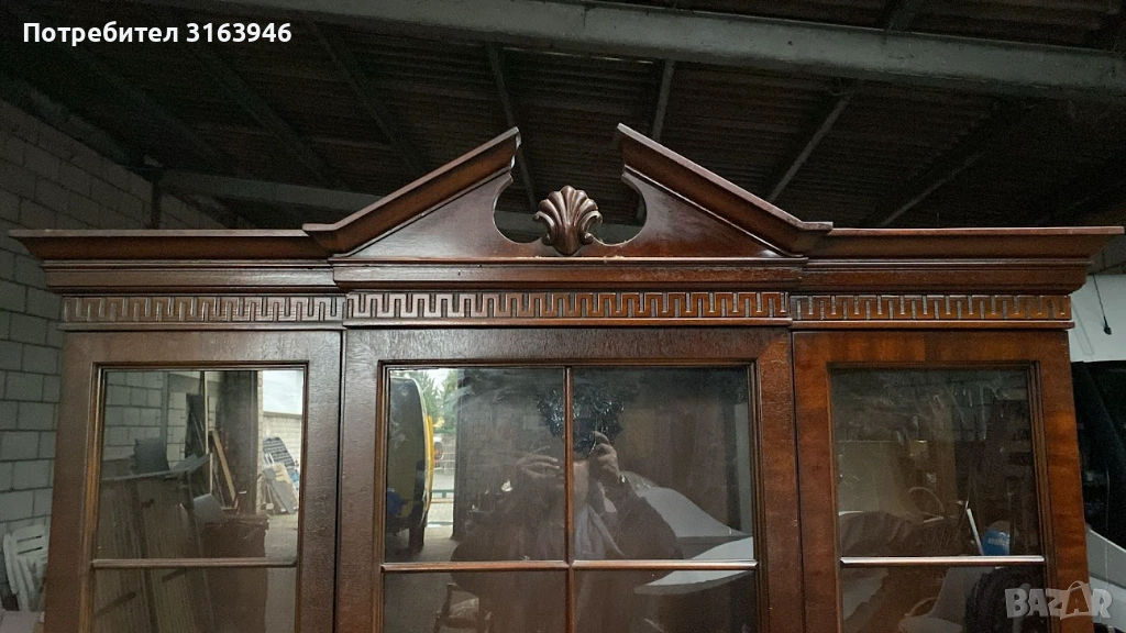 Това е ретро витрина Tryon Manor by Drexel, произведена през декември 1986 г. (както е обозначено от фабричния печат на гърба). Drexel е американска марка, известна с качествените си мебели от масивно дърво и класически дизайн.