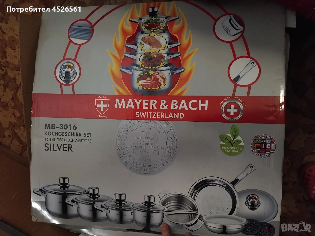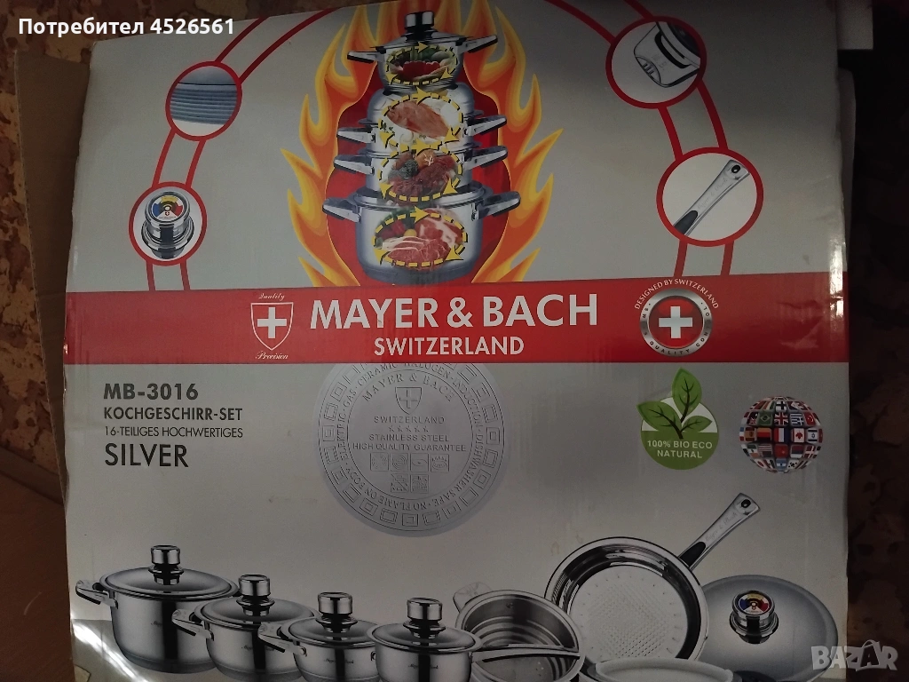 Продава се висококачествен комплект тенджери и тигани Mayer & Bach Switzerland, закупен от Switzerland. Комплектът е чисто нов, само отворен за снимки.