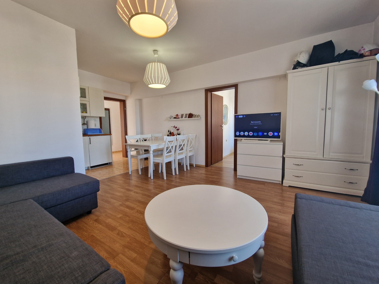 Всекидневната е удобно обзаведена с два разтегателни дивана, холна масичка, телевизор и гардероб.