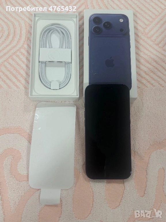 ОТГЛЮЧЕН към всички оператори iPhone 17 PRO, 256 GB памет, модел А3256, тъмно син панел.