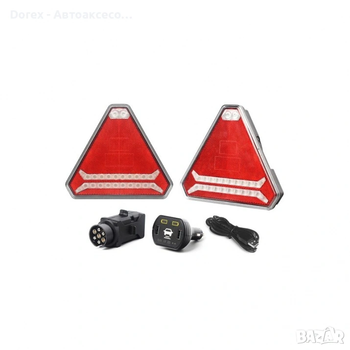Иновативен комплект безжични LED стопове с неон ефект и модерна триъгълна форма, предназначен за ремарке, каравана, платформа и други превозни средства. Монтажът е изключително лесен - без кабели и без инструменти, благодарение на магнитната основа и вендузите. Осигуряват мощна светлина, висока издръжливост и надеждна работа при всякакви условия.