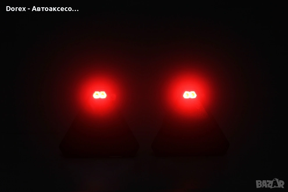 Комплект безжични преносими LED стопове с магнит и вендуза 12V - триъгълен дизайн с неон ефект за ре