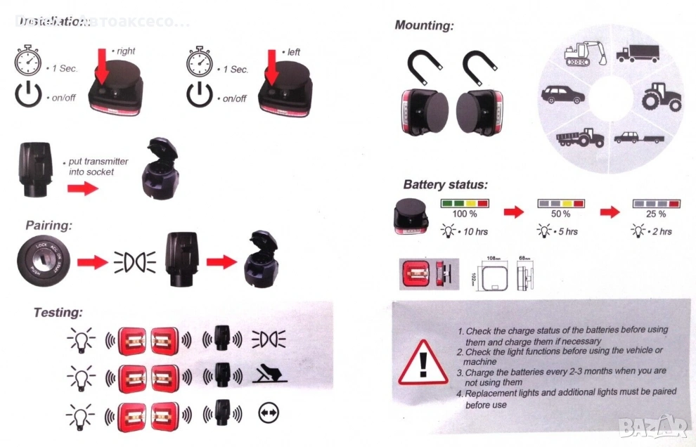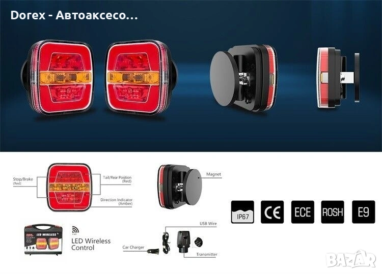 Безжичен комплект LED стопове с неон ефект, предназначен за ремарке, каравана, платформа и други превозни средства. Монтажът е бърз и лесен благодарение на магнитната основа, без нужда от кабели или инструменти. Осигуряват силна светлина, висока издръжливост и надеждна работа при всякакви условия.