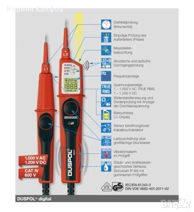 Тестерите за напрежение от серията DUSPOL на Benning са правилнията избор както за професионални цели, така и за домашни условия. Измервателните уреди на Benning се отличават с качеството и множеството функции, които предлагат.