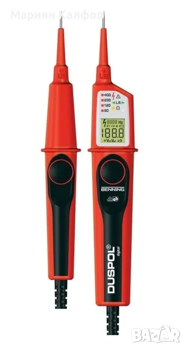 Професионален двуполюсен тестер за напрежение Benning DUSPOL Digital, IP65, LCD, 1-1000 V AC/ 1-1200 V DC с бутони за тест на ДТЗ