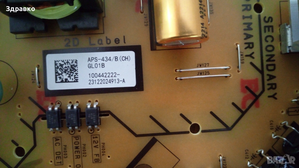 Power Board APS-434/B (CH) / 100985711 от чисто нов телевизор SONY KD-55X75WL със счупен дисплей при транспорта. Платката е работеща и е нова, модела на дисплея е BOEI550WQ1 / 1-016-901-11.