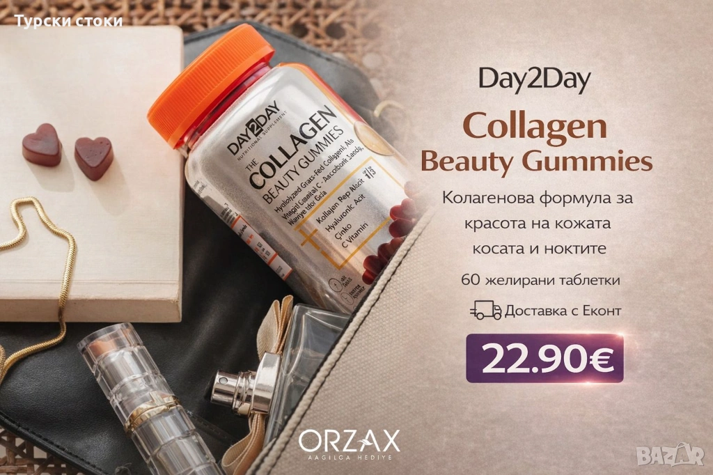 Подкрепете естествената красота на кожата, косата и ноктите с Day2Day Collagen Beauty Gummies. Вкусни желирани таблетки с колаген и подбрани активни съставки, създадени за ежедневна грижа отвътре.