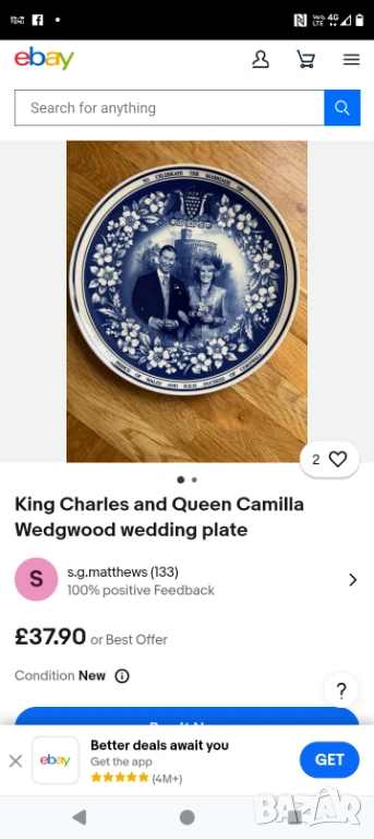 Колекционерска чиния, издадена в чест на брака на принц Чарлз и Камила Паркър → Обява 53857392