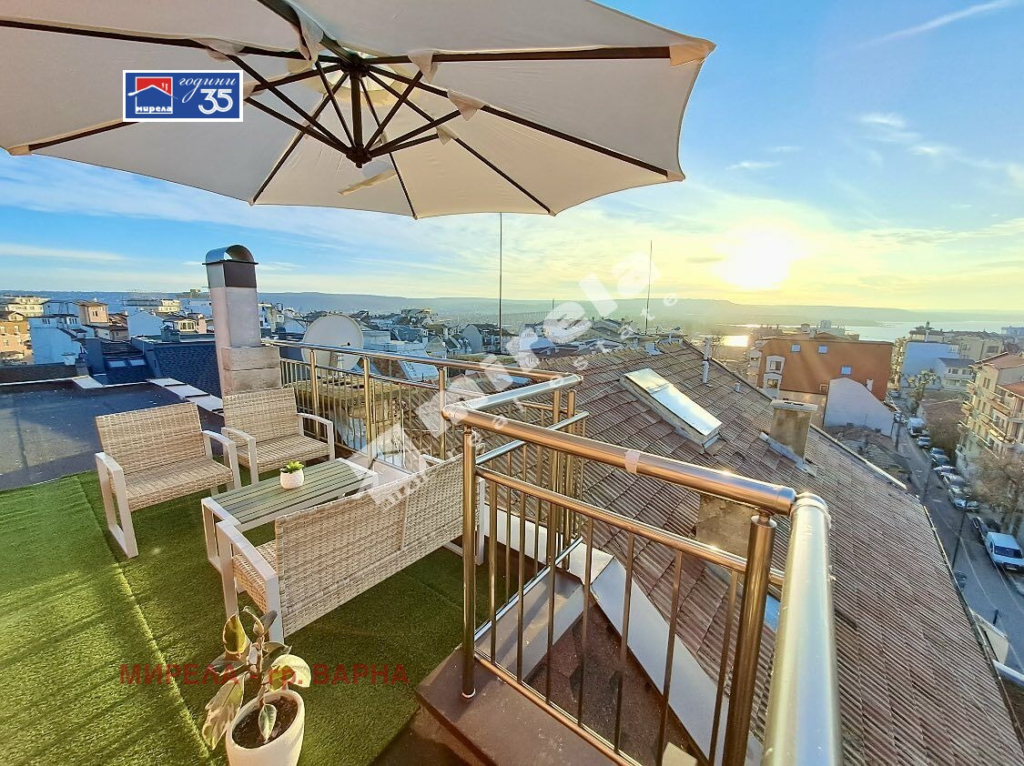 Мезонетът разполага с голяма тераса 70 кв.м с панорамна гледка към Варненското езеро и центъра на града, с обособен кът за отдих и място за барбекю.