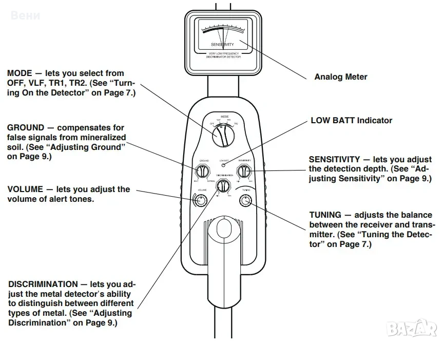 Продавам металотърсач BARSKA Winbest Master Edition BE11640, донесен от Германия. Уредът не е тестван и не е отварян, липсва задната част – подлакътникът. Тази част може лесно да се изработи с подръчни материали, но детекторът може да се използва и без нея, макар при продължително търсене ръката да се уморява повече.