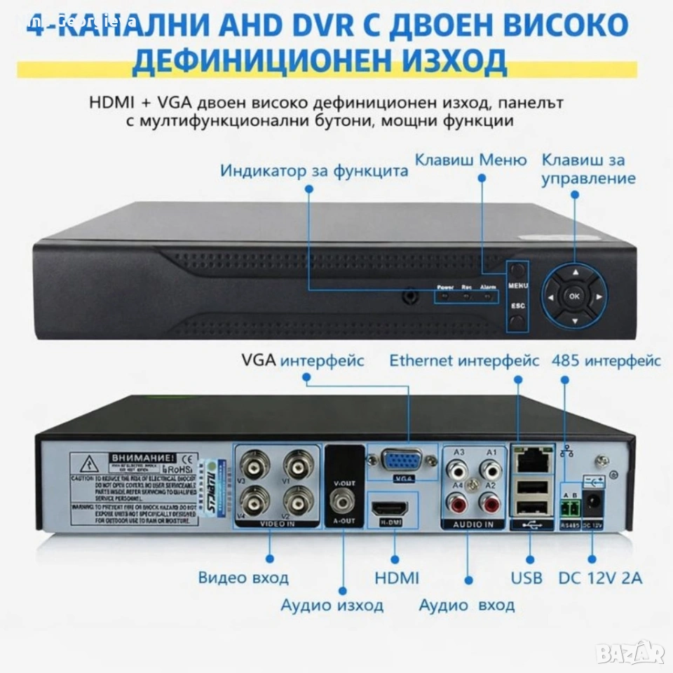 Захранване: 12V 2A