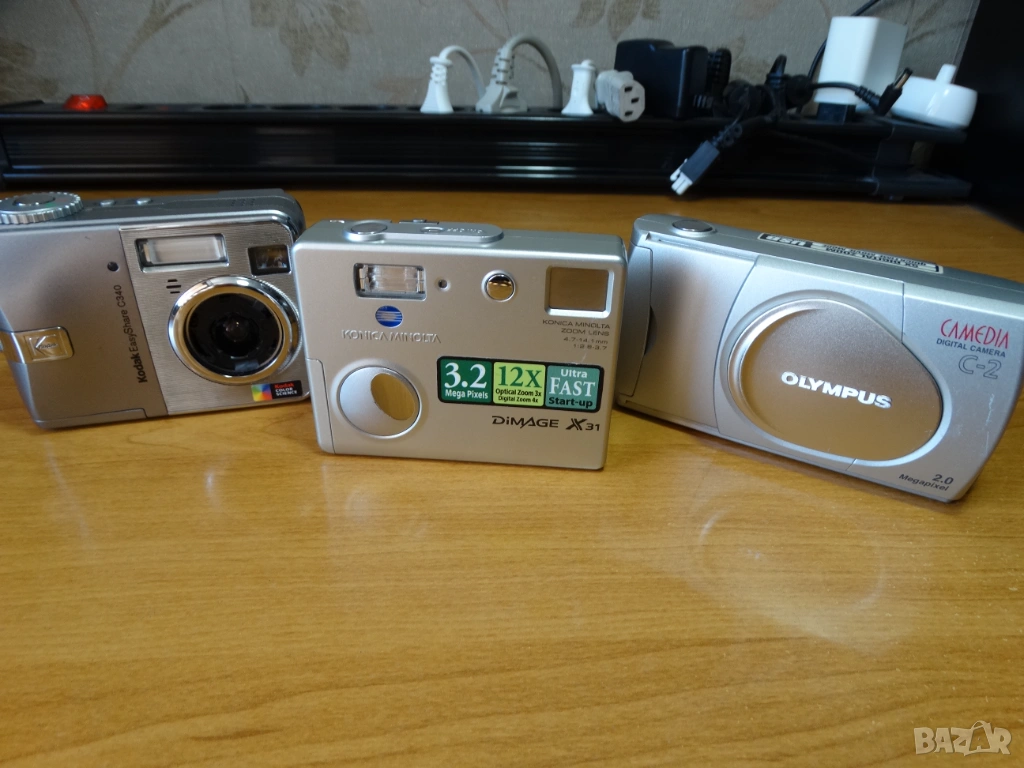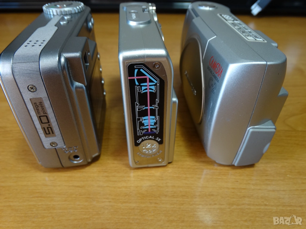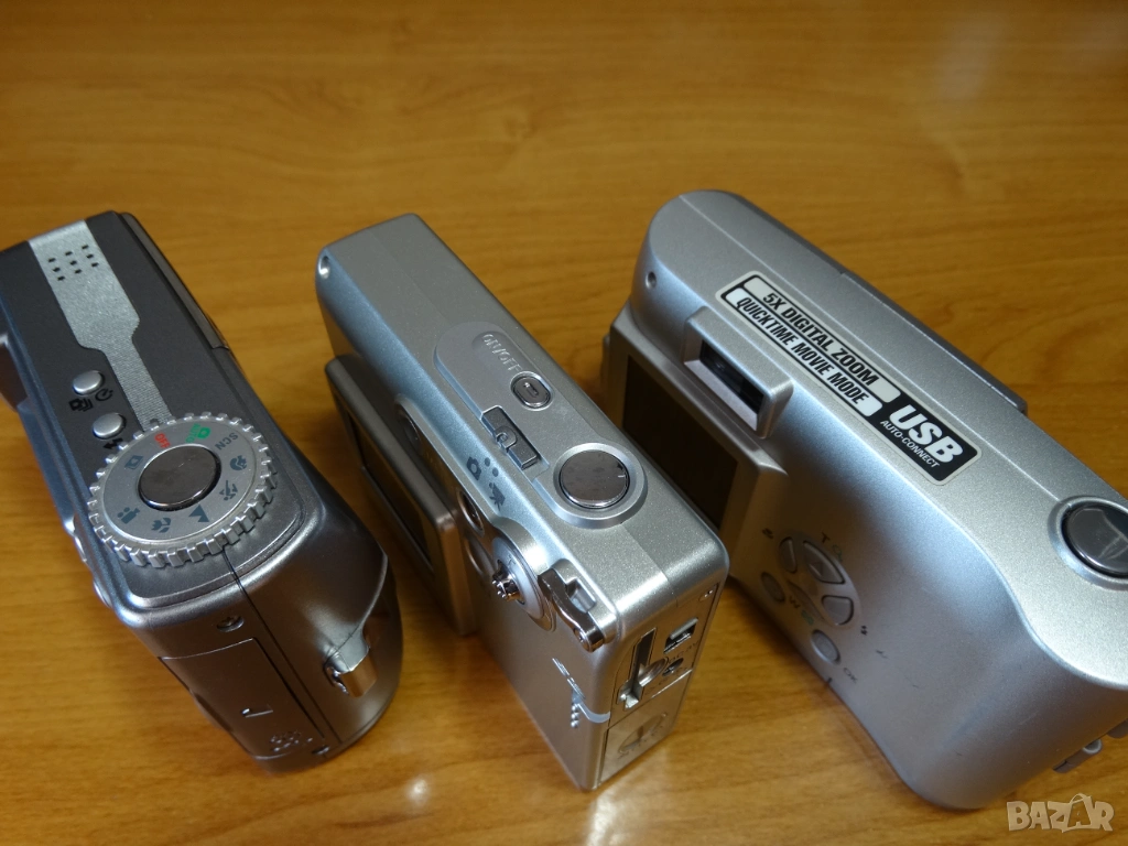 Здравейте ! Предлагам Ви три стари, цифрови апаратчета, придобивани през годините, извадени преди месеци при разчистване и едва сега предложени тук ...интересни, стари моделчета, като 2 са подходящи за пълноценна употреба или колекция, а третото е със забележка !