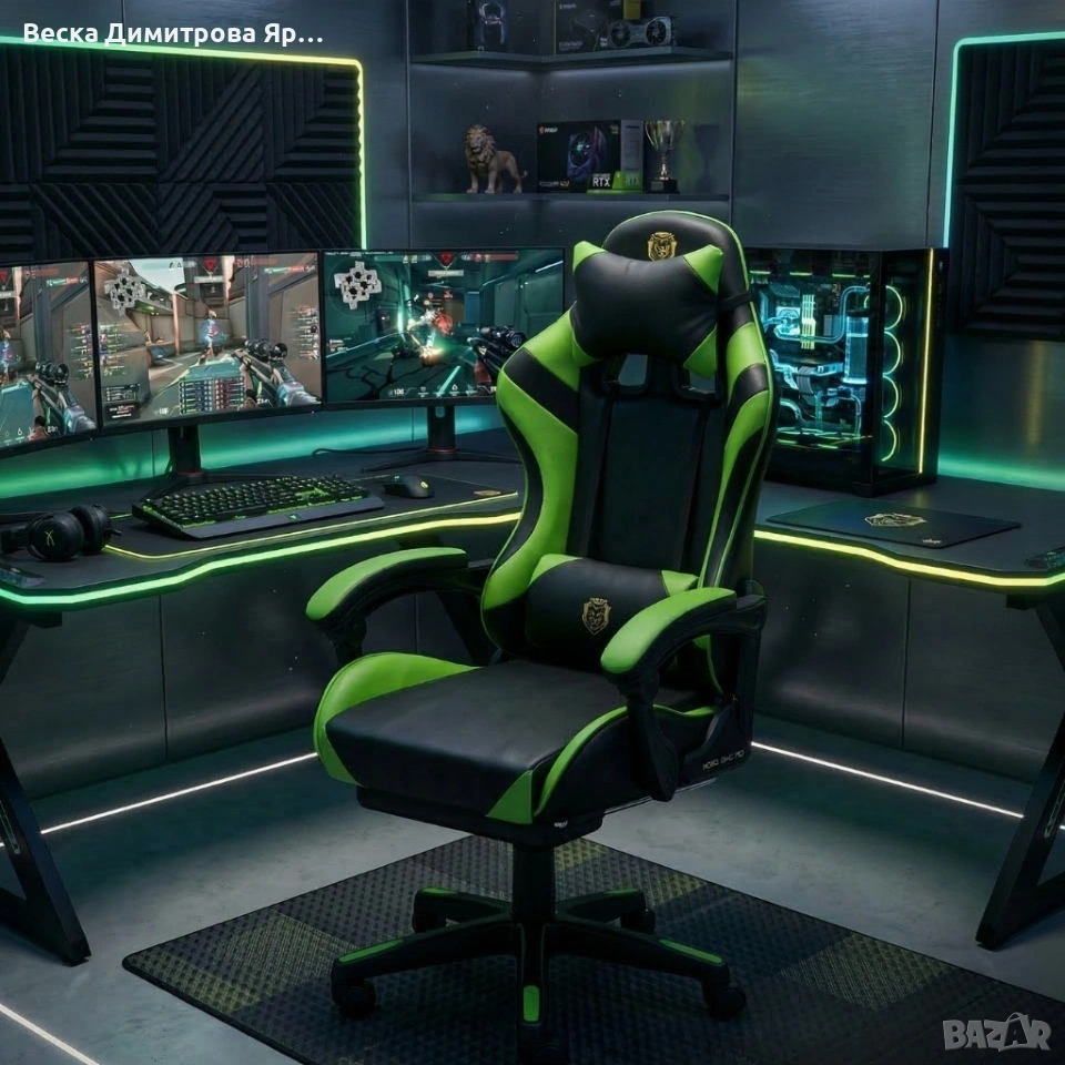 Ергономичен геймърски стол с масажна функция и поставка за крака, PU е