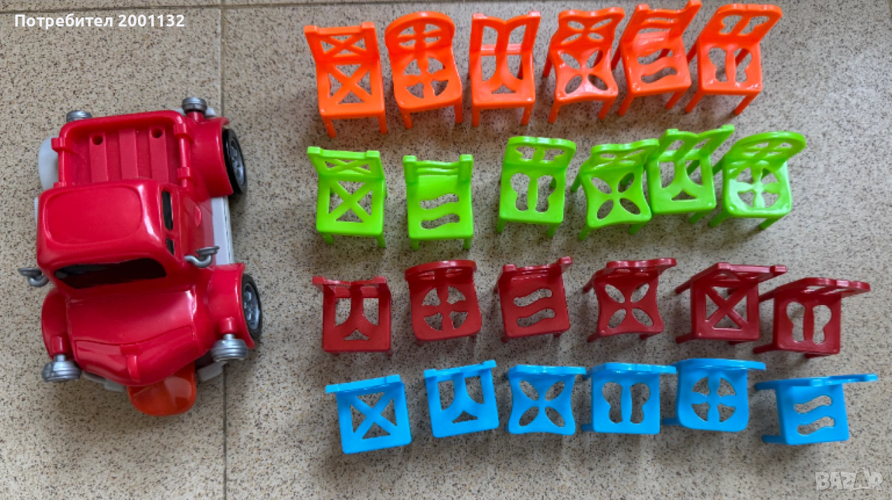 Камиончето се движи в кръг и всеки играч поставя столчетата си върху него. Който първи си постави столчетата без да падне нито едно печели играта.