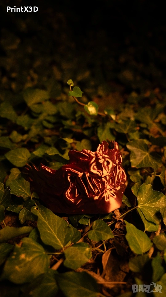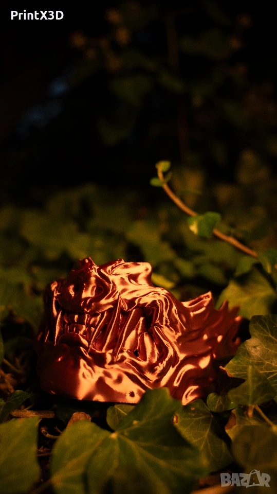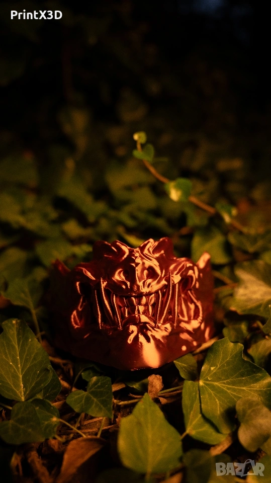 Представям 3D принтирана декоративна маска с демоничен, органичен дизайн – създадена да изглежда като реликва от подземно царство или финален бос от друга вселена. Тя не просто стои в стаята – тя променя цялата ѝ енергия.
