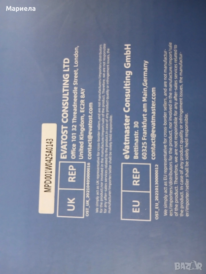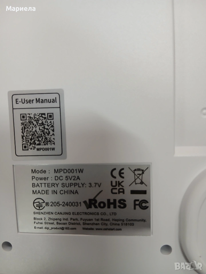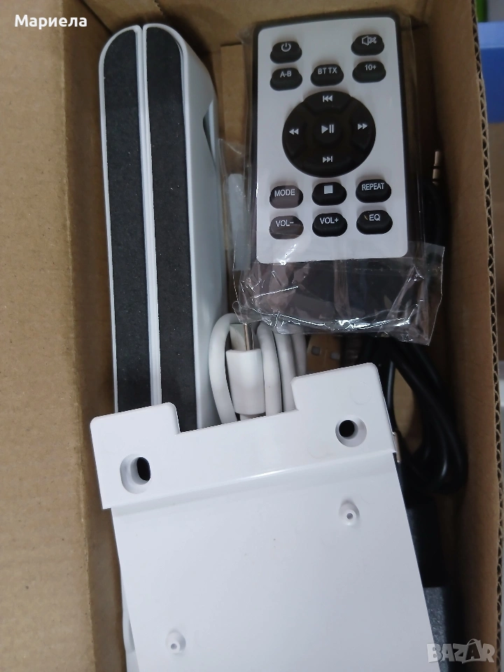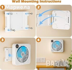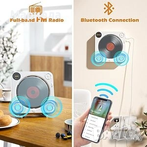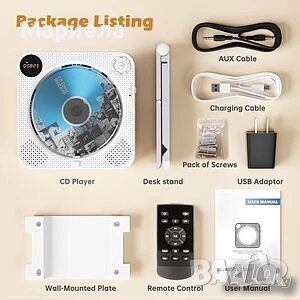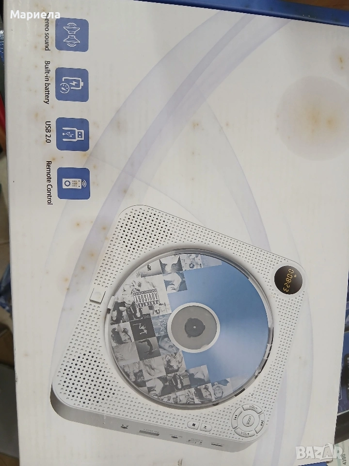 Плейърът е закупен от разпродажба в Германия и е НОВ! Има забележки по опаковката-показано в последните снимки с което цената е съобразена! Този преносим CD плейър има вградена акумулаторна батерия с капацитет 2000mAh, така че не е нужно да се притеснявате, че няма да можете да го използвате на места без електричество, нито пък да носите куп дълги кабели - можете да го вземете навсякъде. CD плейърът се зарежда напълно за около 4 часа и поддържа до 4-5 часа работно време, когато е напълно зареден. Преносимият CD плейър има вградено FM радио и поддържа 76 MHz - 108 MHz. Съвместим е с CD, CDR, HDCD, MP3 и WMA формати. Има 5 вида режими на възпроизвеждане и 5 еквалайзера, идеални за слушане на вашите ценни CD-та. Този Bluetooth CD плейър е приемник, лесен за работа и може да се свърже с повечето устройства, които имат Bluetooth предавател. Има USB порт и поддържа USB флаш памети (формат FAT32, до 32GB). Този CD плейър има преден LED дисплей, на който можете лесно и ясно да видите режима и времето за възпроизвеждане на екрана. Предните бутони ви позволяват лесно да регулирате силата на звука и режимите, както и да превключвате песни, елиминирайки инвертирането на екрана или бутоните. Този CD плейър има два вградени двойни високоговорителя, които осигуряват ясен, висококачествен стерео съраунд звук. Този CD плейър се предлага с настолна стойка и стена, идеални за кухня, хол, спалня, фитнес зала, офис и др. Стенната стойка и капакът против прах могат да предпазят CD плейъра от всякакви евентуални повреди, като например движение на домашни любимци, пръски храна или натрупване на прах. Този плейър е оборудван и с дистанционно управление, а разстоянието е до 10 метра.