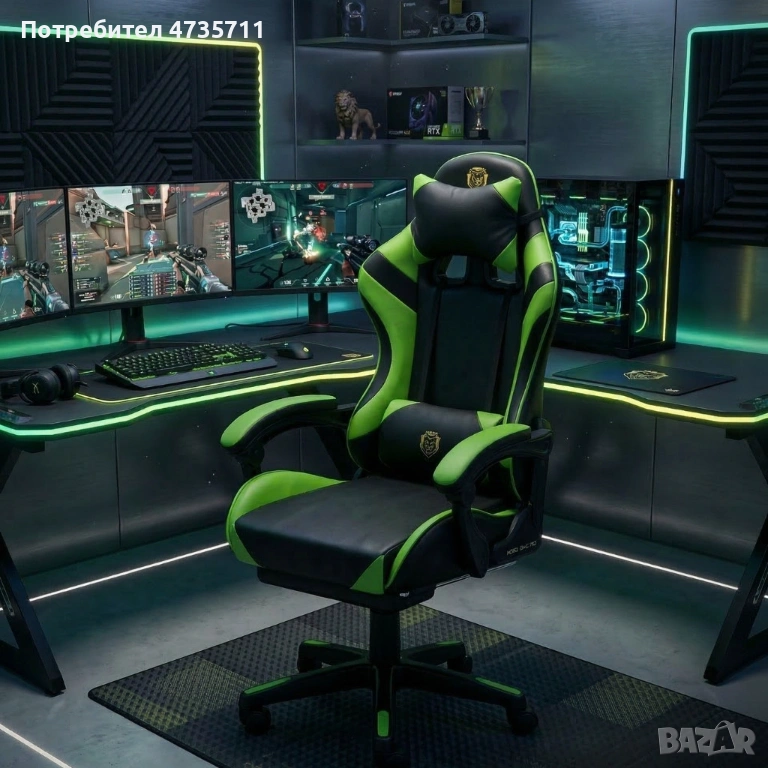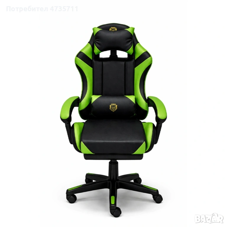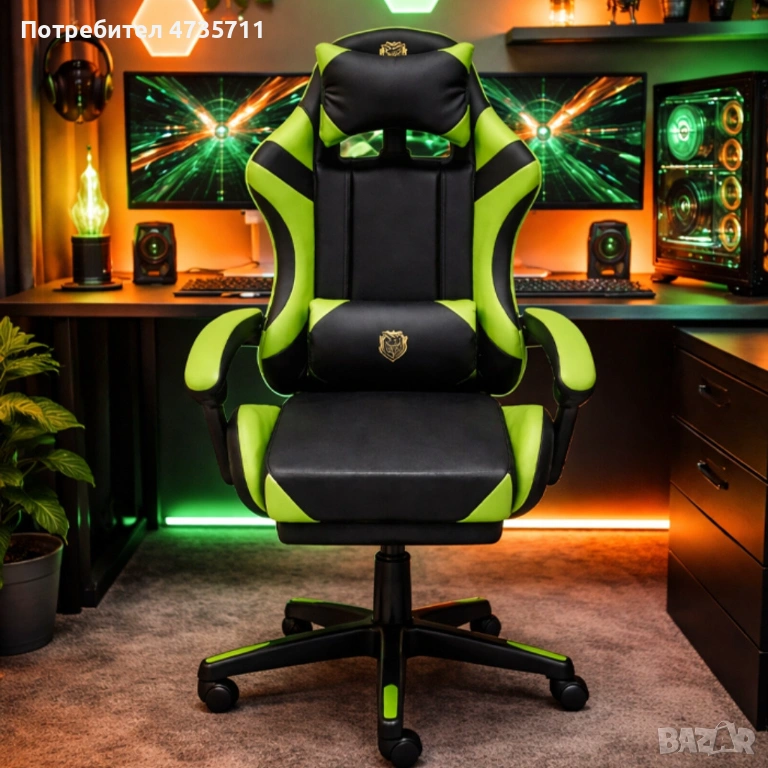 Ергономичен геймърски стол с масажна функция и поставка за крака, PU екокожа, метална рамка, регулируем