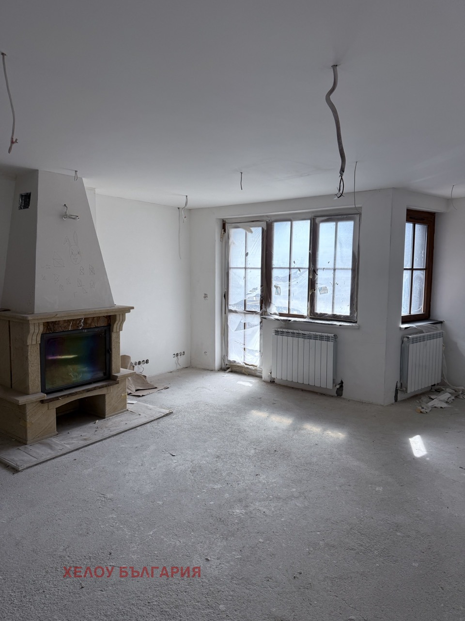 На първото ниво е разположена просторна дневна с отворена кухня и място за голяма трапезна маса. Разпределението позволява комфортно оформяне както на кухненска част, така и на зона за отдих с мека мебел. Големите прозорци осигуряват добра естествена светлина през целия ден.