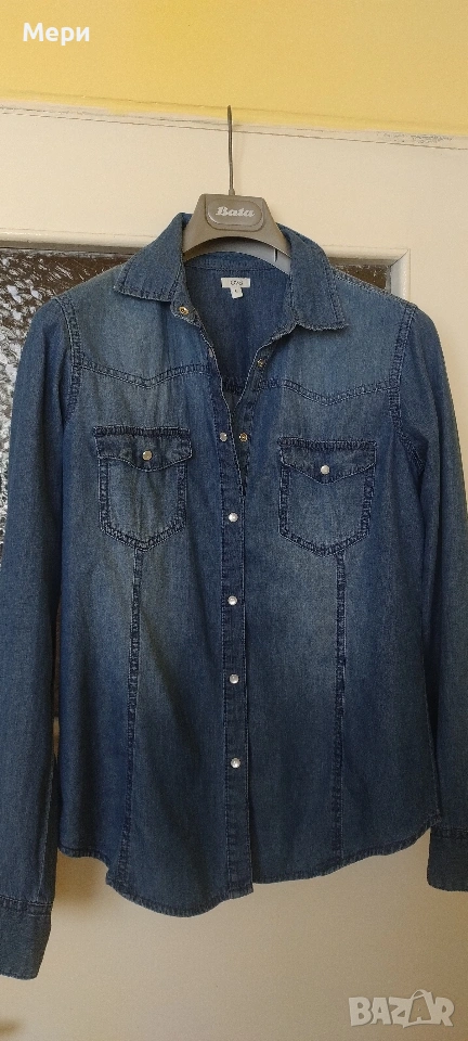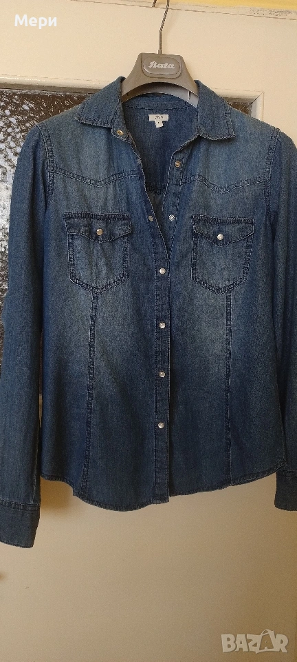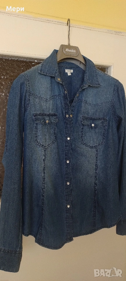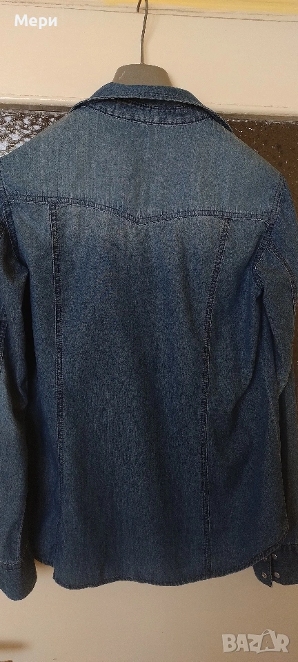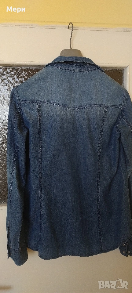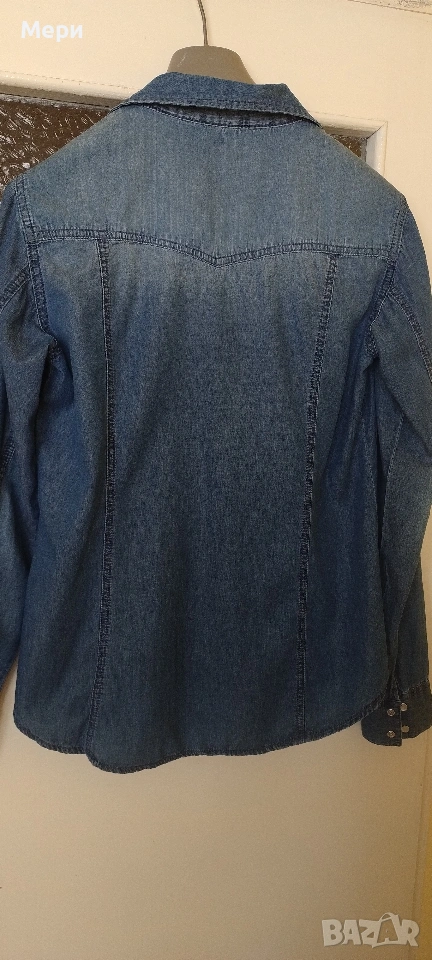 Дънкова риза, размер М/L. Дължина 67 см. Дължина ръкав 62 см. Гръдна обиколка 98 см. За София може лично предаване.