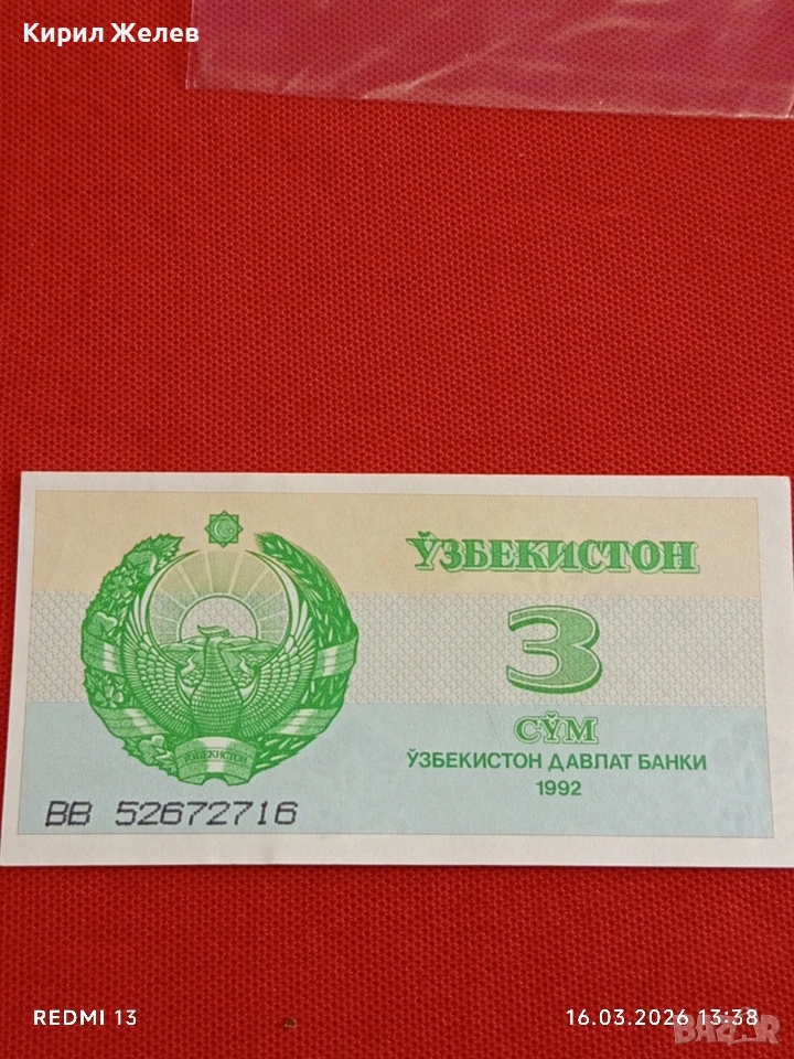Банкнота УЗБЕКИСТАН много красива перфектно състояние непрегъвана за КОЛЕКЦИЯ ДЕКОРАЦИЯ 54161 → Обява 53858579