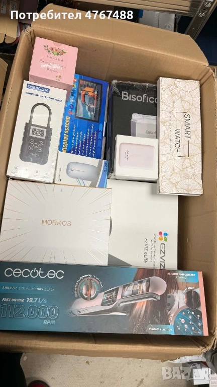 В един кашон има ориентировъчно между 60 и 90 броя продукти. Повечето са нови или с нарушена опаковка. Стоките не са подробно проверявани и всеки кашон е различен като съдържание.