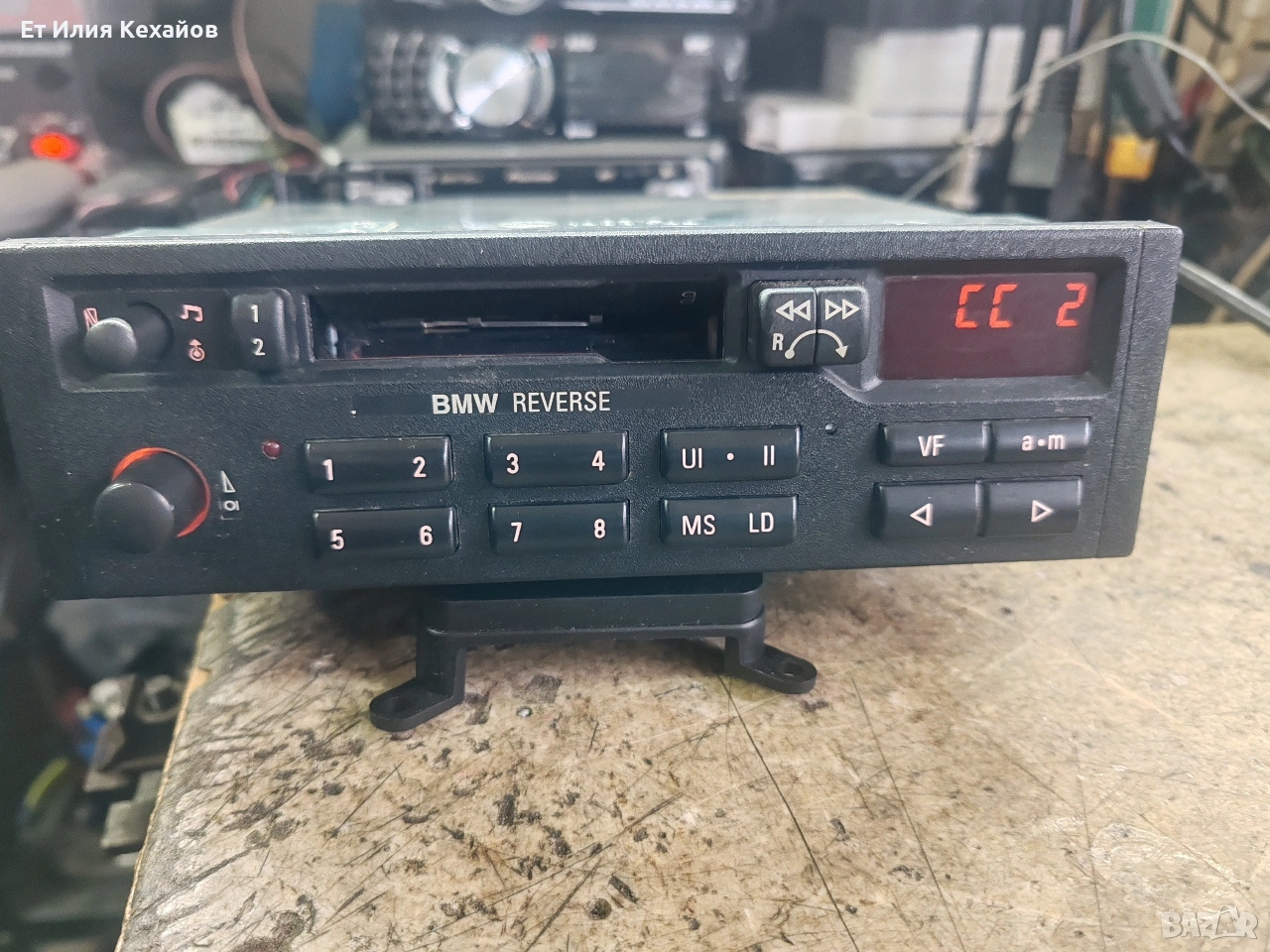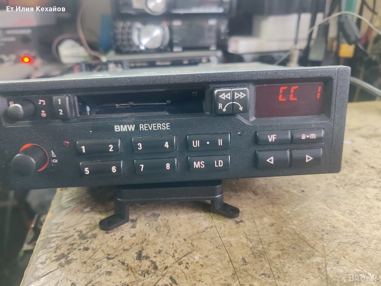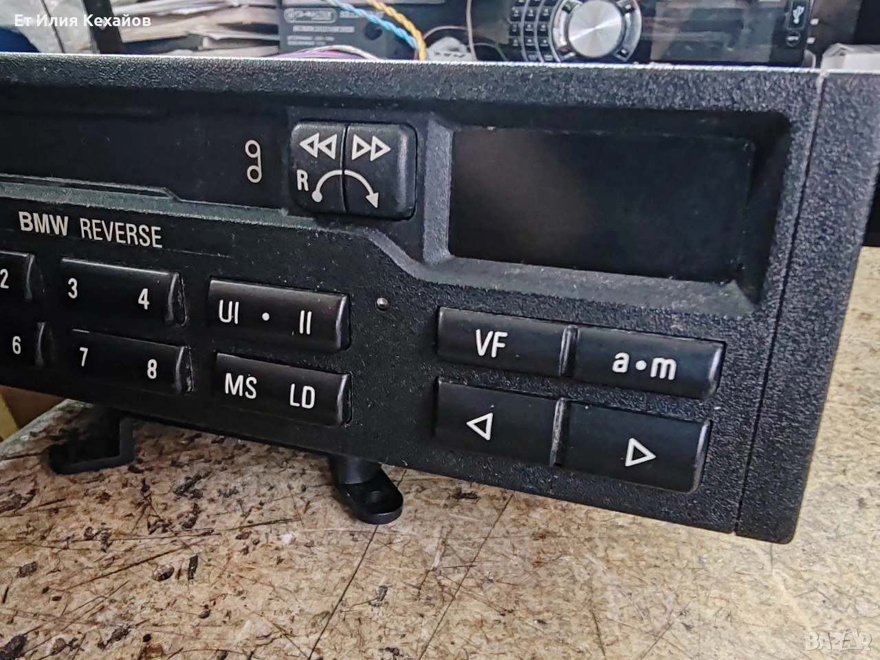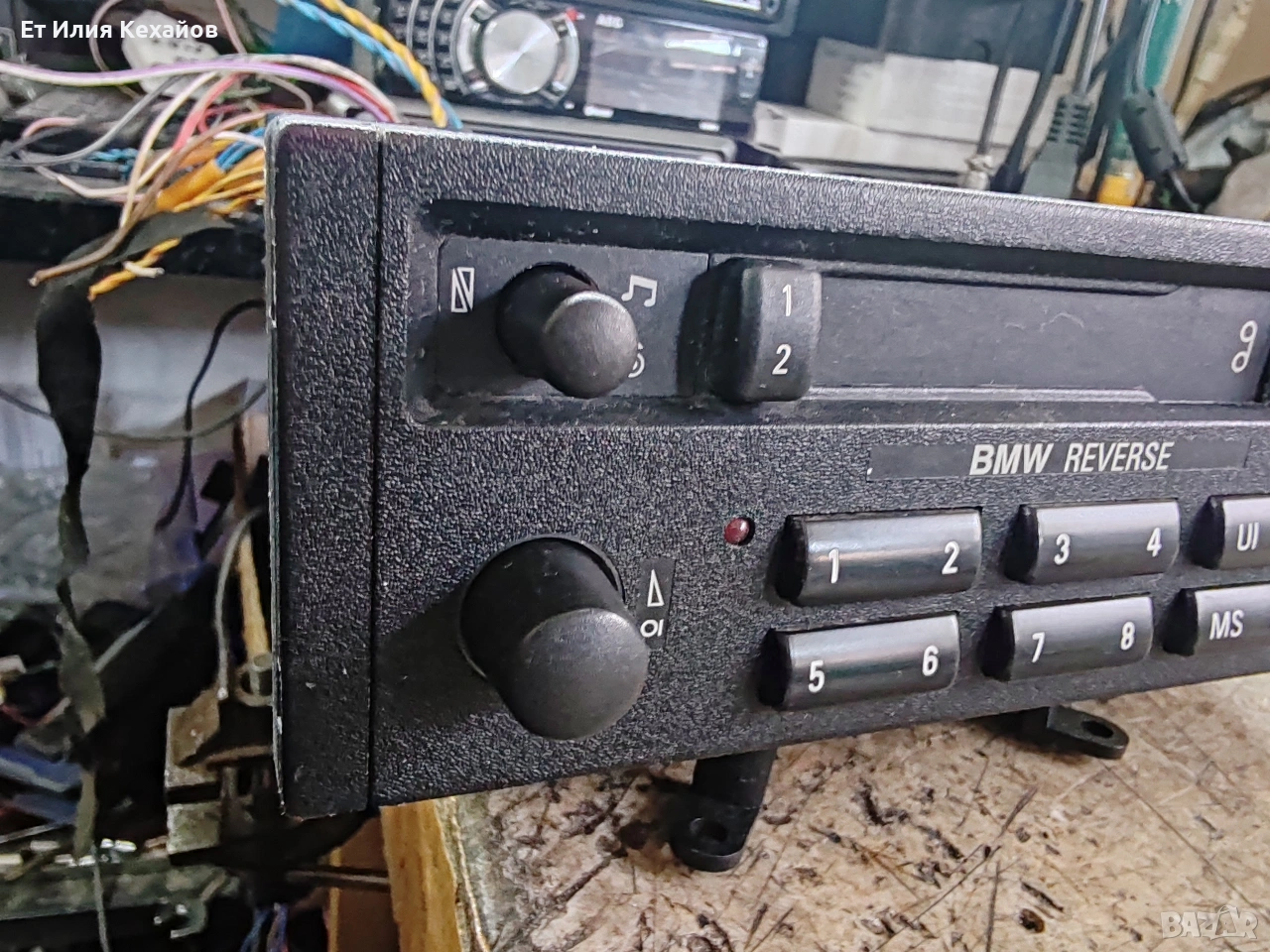 Ретро касетофон Бмв реверс. Състояние, като нов и отвътре и отвън.Радио, касета, реверс. Всичко работи. Комплект с оригиналната гривна и букса.Цена не коментирам.
