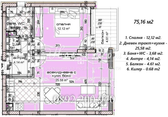 ✔Просторна Дневна с Кухненски Бокс: 25.58 м² светлина и пространство! Перфектно обособени зони за готвене, хранене и почивка. Идеално място за Вашето ежедневие и социални контакти.