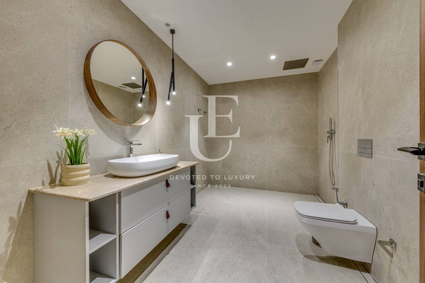 Жилището включва просторна мастър спалня със собствена баня и тоалетна, както и втора стая, оформена като стилен кабинет/офис, подходяща за работа от дома или библиотека, която при необходимост може лесно да бъде обособена като втора спалня. Баните са изпълнени с луксозни каменни облицовки и висок клас санитария, създаващи усещане за елегантна спа атмосфера.
