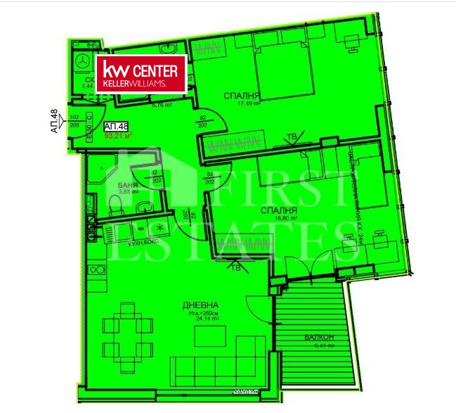 Компания First Estates предлага на Вашето внимание тристаен апартамент в нова сграда , доказан строител , качествено строителство .