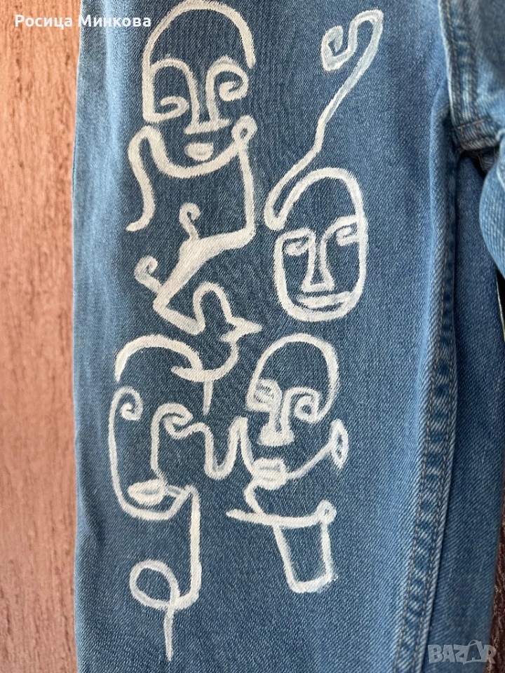 Дамски дънки, ръчно рисувани. L размер. Без следи от употреба.