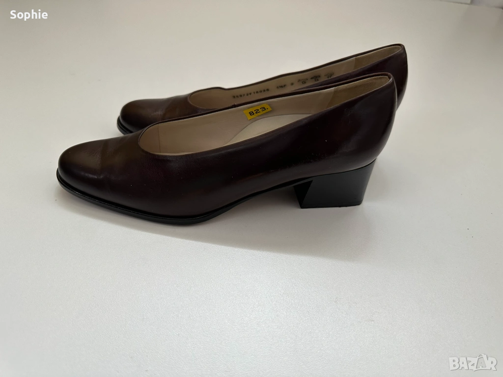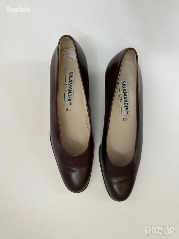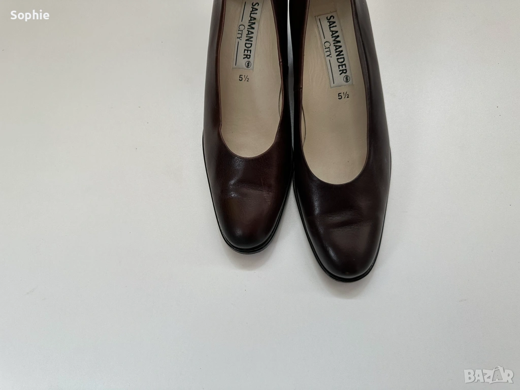 Кафяви дамски обувки на ток от естествена кожа Salamander, размер 5 1/2/ 38.5, височината на тока е 4 см, в отлично състояние