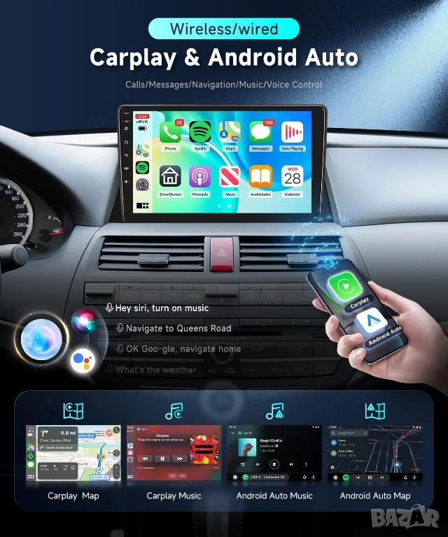 ✔ Безжичен Apple CarPlay & Android Auto