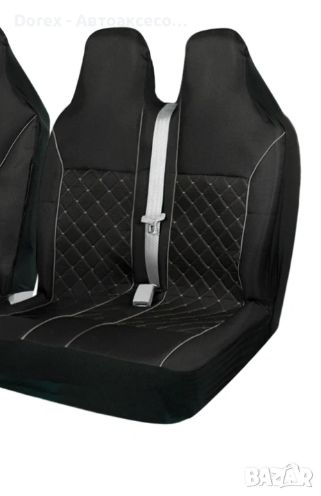 Висококачествена интегрирана тапицерия за предните седалки на бус, изработена от издръжлив текстил с елегантен капитониран (диамантен) дизайн. Придава модерен и луксозен вид на интериора, като същевременно осигурява комфорт и защита на оригиналните седалки.