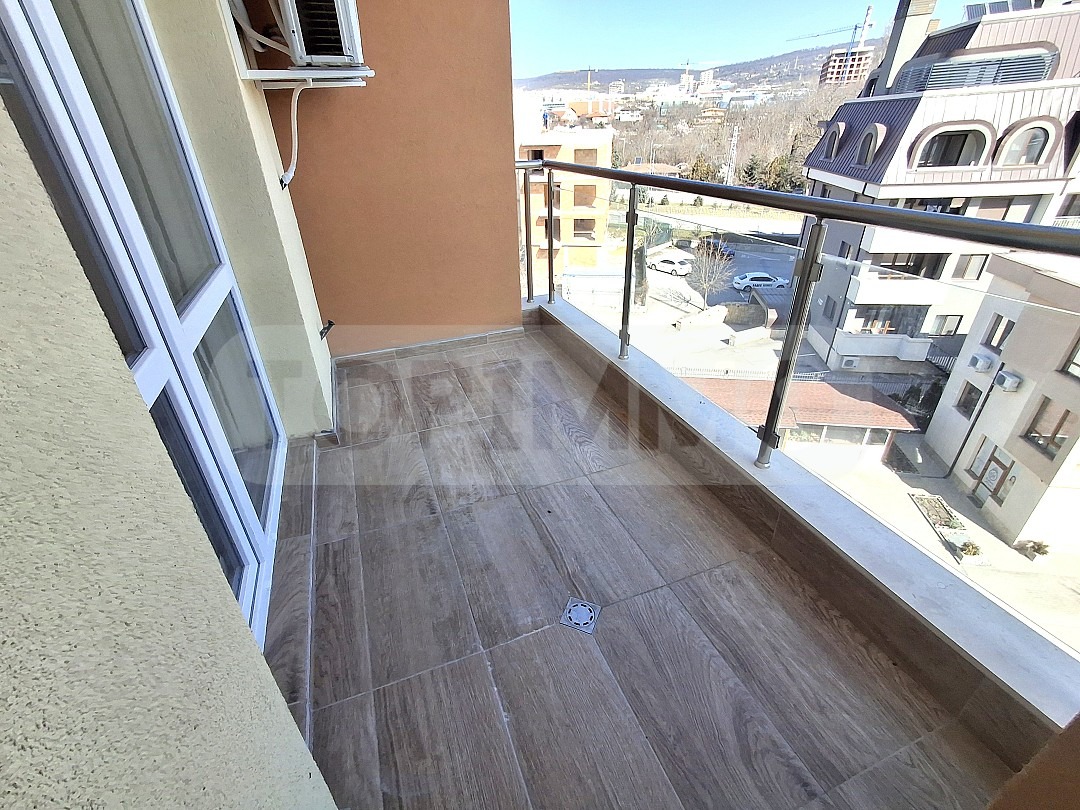 Сградата е седеметажна с контрол на достъпа, асансьор и отлични общи части. Апартаментът е разположен на 6-ти етаж и се състои от: коридор, дневна с кухненска част, спалня, баня с тоалетна и балкон, от който се открива панорамна гледка към варненското езеро. Изложението е изток.