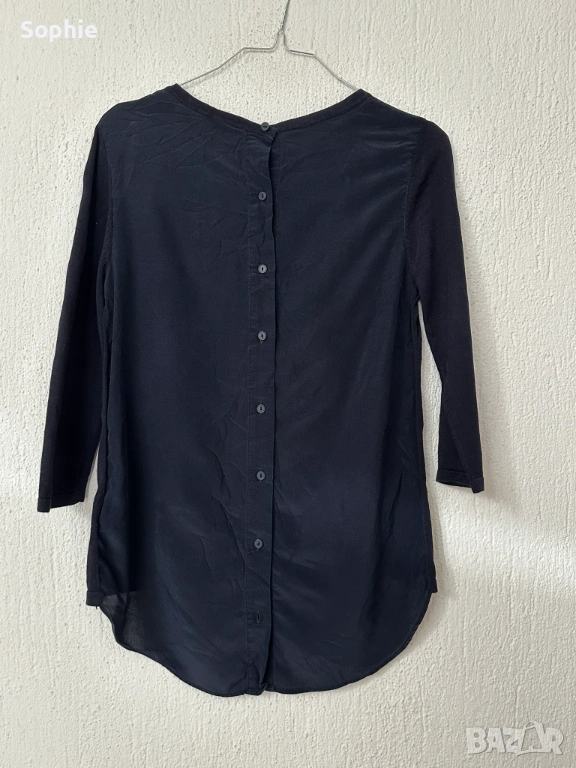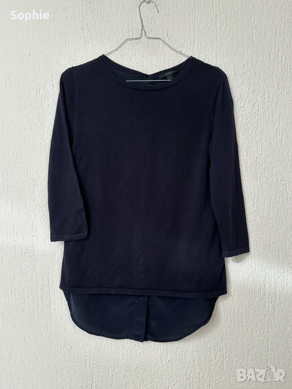 Топ от копринена смес COS, размер XS, предната част е памук, гърбът е коприна, от рамо до рамо - 38, от мишница до мишница - 44 см, ръкав - 43 см, дължина - 70 см
