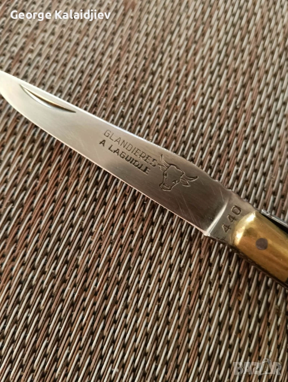 LAGUIOLE GLANDERES.ОРИГИНАЛЕН ФРЕНСКИ НОЖ.МНОГО ДОБРО СЪСТОЯНИЕ.ДРЪЖКА БИВОЛСКИ РОГ.ДЪЛЖИНА ОСТРИЕ 70 ММ.ЦЯЛОСТНА ДЪЛЖИНА 170ММ.