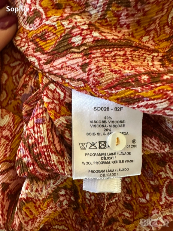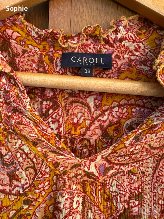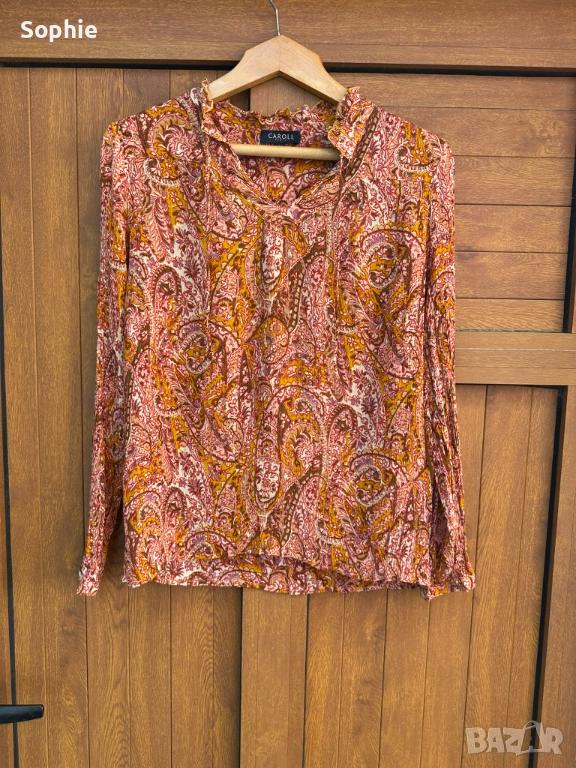 Бохо топ от копринена смес Caroll Paris, размер 38, от рамо до рамо - 40 см, от мишница до мишница - 51 см, дължина - 65 см, 80% вискоза, 20% коприна