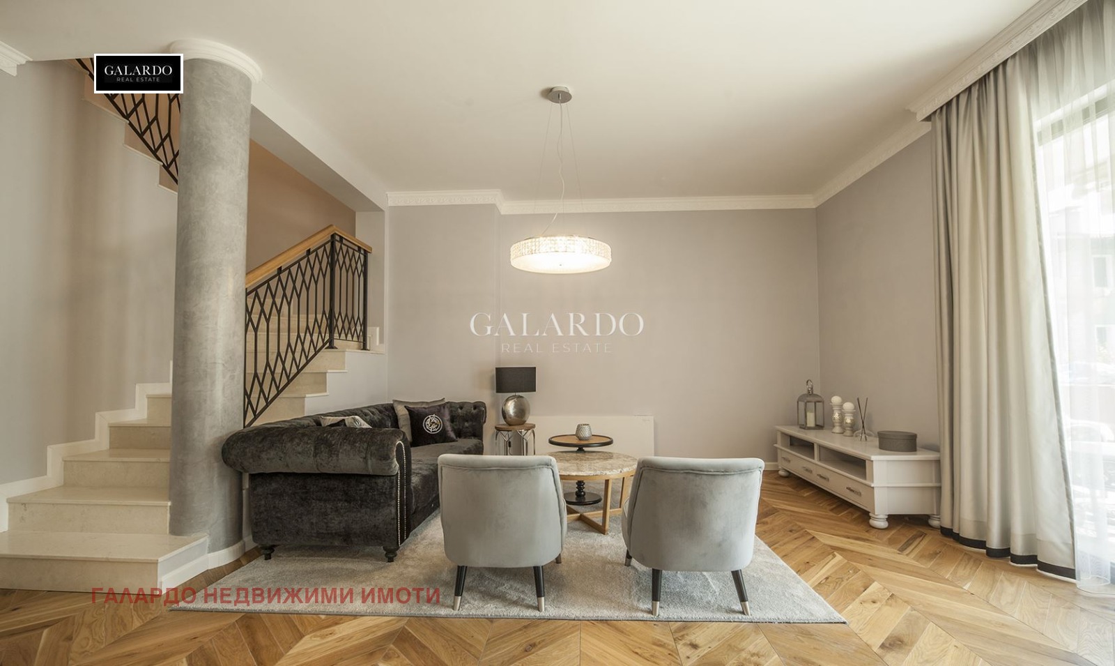 Galardo Real Estate с удоволствие представя на Вашето внимание триетажна къща с прекрасен вътрешен двор в затворен комплекс до Англо-Американското училище. .