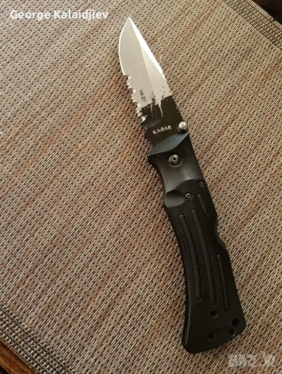 KA BAR MULE. MADE IN TAWAN.ОРИГИНАЛЕН KA BAR.МОЩЕН ФОЛДЪР С ЦЕЛИ МЕТАЛНИ ЛАЙНЕРИ.ДЪЛЖИНА ОСТРИЕ 90 ММ.ЦЯЛОСТНА ДЪЛЖИНА 220 ММ.СТОМАНА AUS 8.ОТДАВНА СПРЯН ОТ ПРОИЗВОДСТВО.