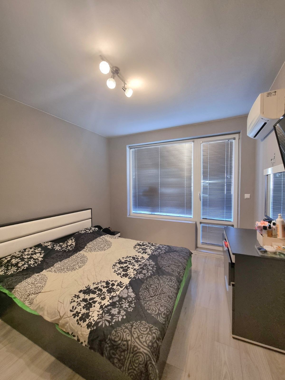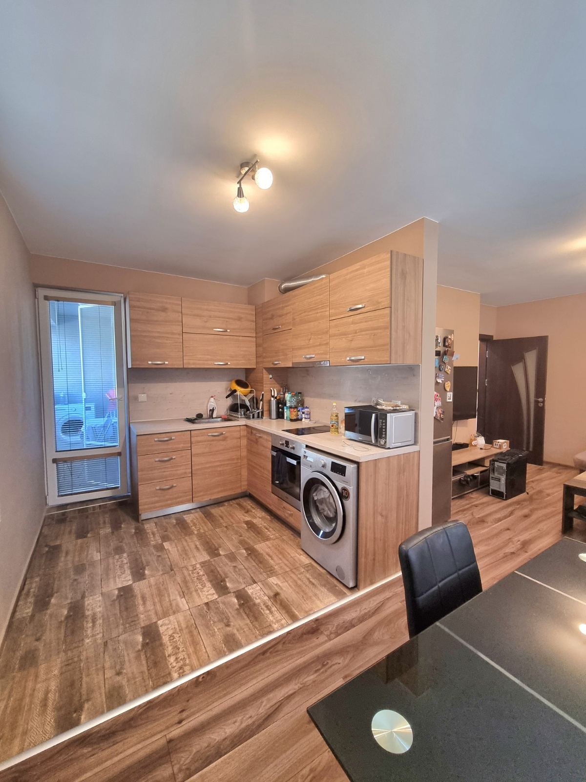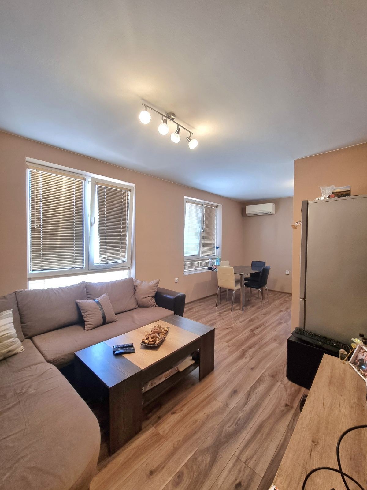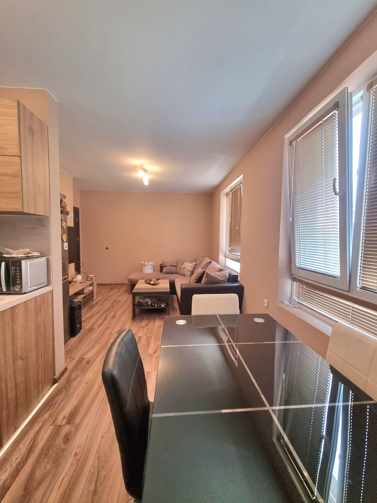 Имотът представлява: Голям коридор, просторна и слънчева всекидневна, от която се излиза на остъклена тераса, функционална спалня, баня с тоалет и маза. Имота се продава с цялото обзавеждане. Има възможност за закупуване на външно паркомясто.