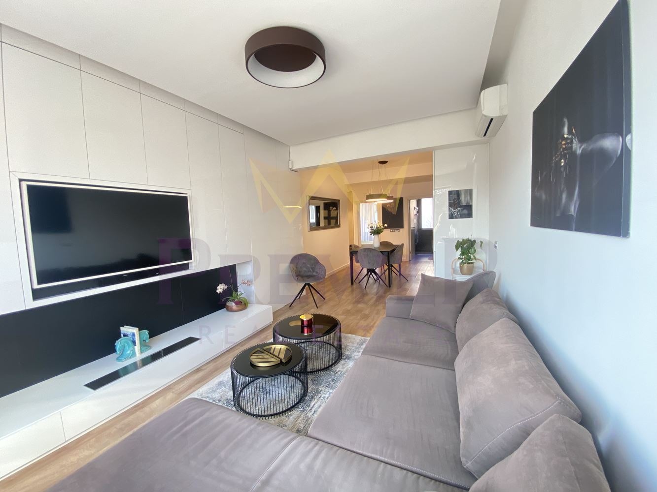 Апартаментът е изцяло ремонтиран и обзаведен по дизайнерски проект, готов за нанасяне. В застроена площ от 60 кв.м. са разпределени функционално: входно антре, просторна дневна с кухнеска част и трапезария, спалня и баня с тоалетна. Жилището е светло и уютно,с модерно обзавеждане и висококачествени електроуреди.