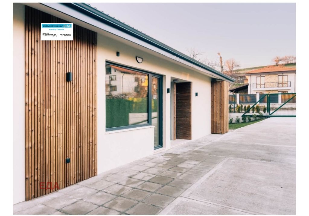 Имотът е с разгъната застроена площ от 210 кв.м, разположен изцяло на един етаж, което осигурява удобство и комфорт за цялото семейство. Височината на помещенията е 3 метра, което създава допълнително усещане за простор и светлина. Къщата е проектирана така, че от всяко помещение има директен излаз към двора, осигурявайки връзка с външното пространство и максимално удобство.