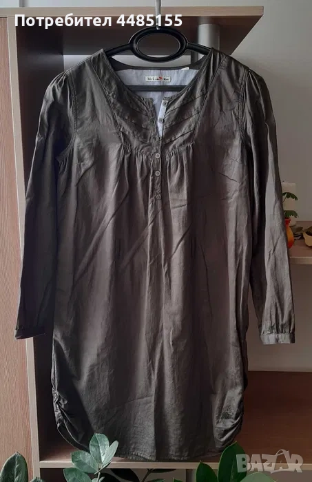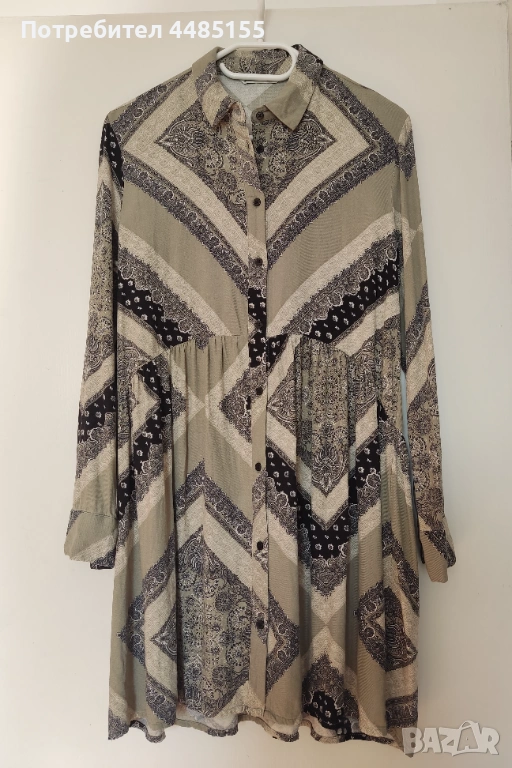 Туника Stradivarius, L. Може би и М. Материята е много приятна памучна. Принтът е интересен дантелен. Моделът е оригинален, в стила на бранда. Копчетата са по цялата дължина отпред. Една идея е да се носи с каубойски ботуши. В отлично състояние.