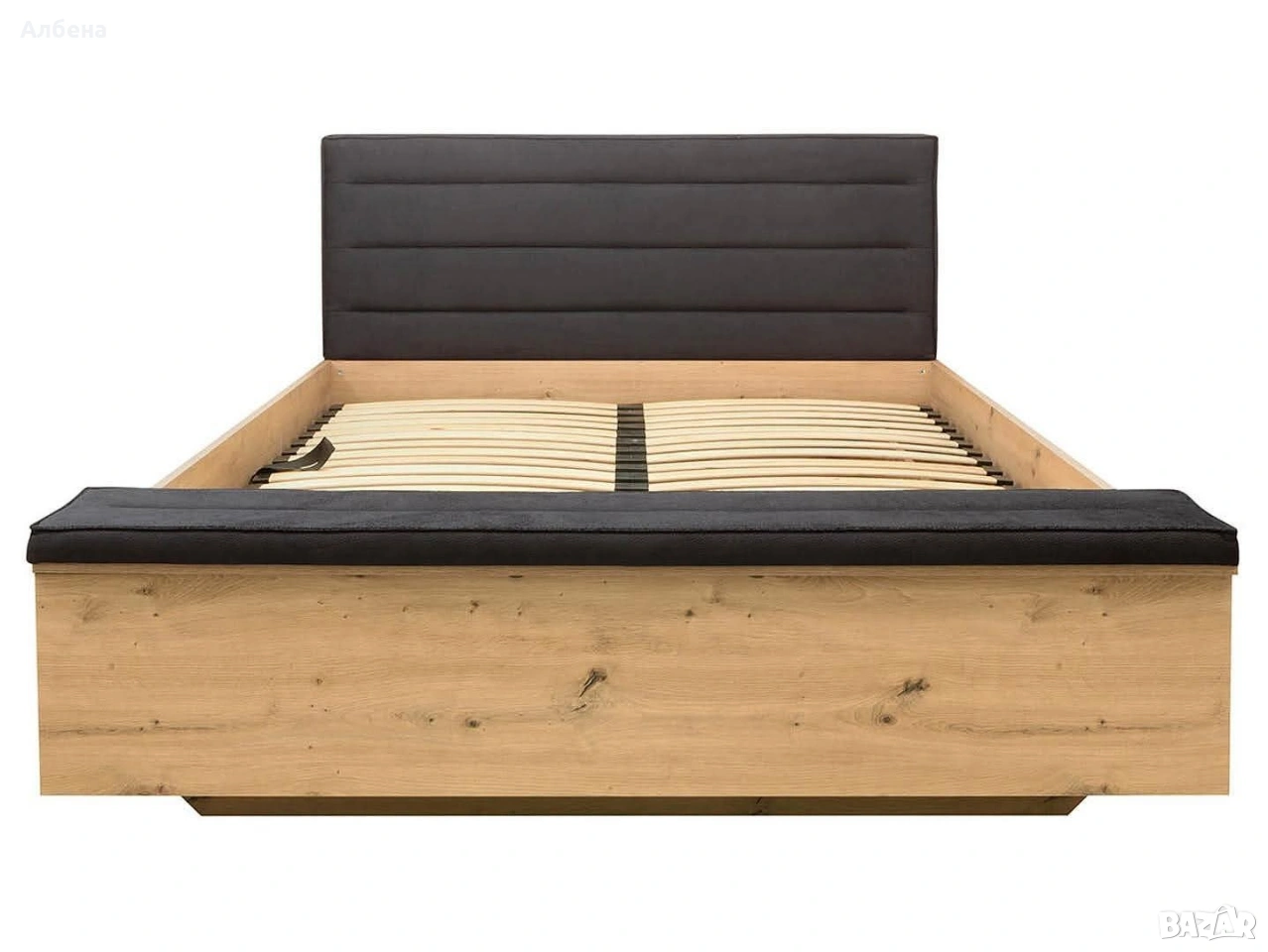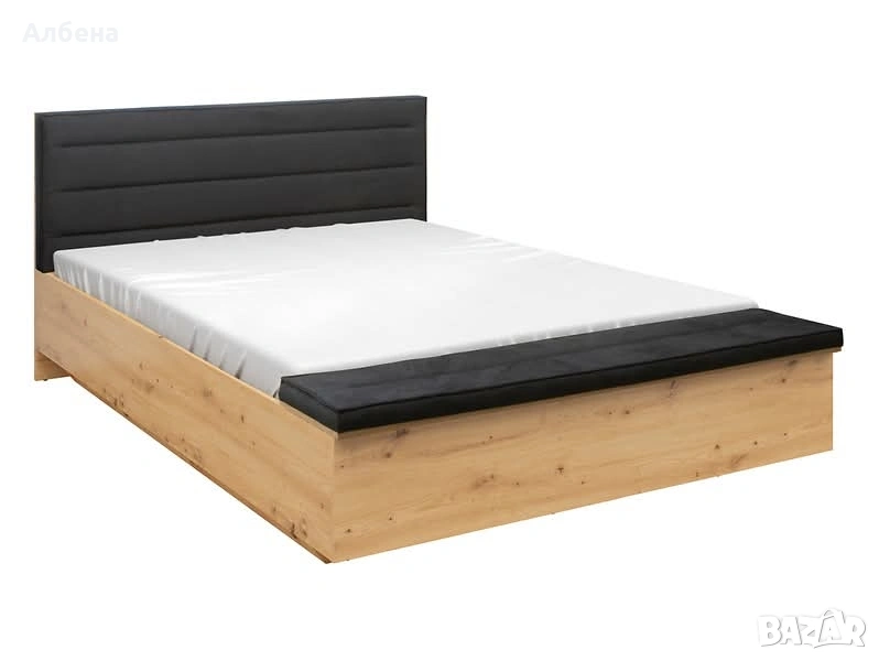 Елегантност, комфорт и функционалност в едно! Леглото Ostia съчетава топлия дъбов декор с модерна черна тапицерия — перфектен избор за стилна спалня!