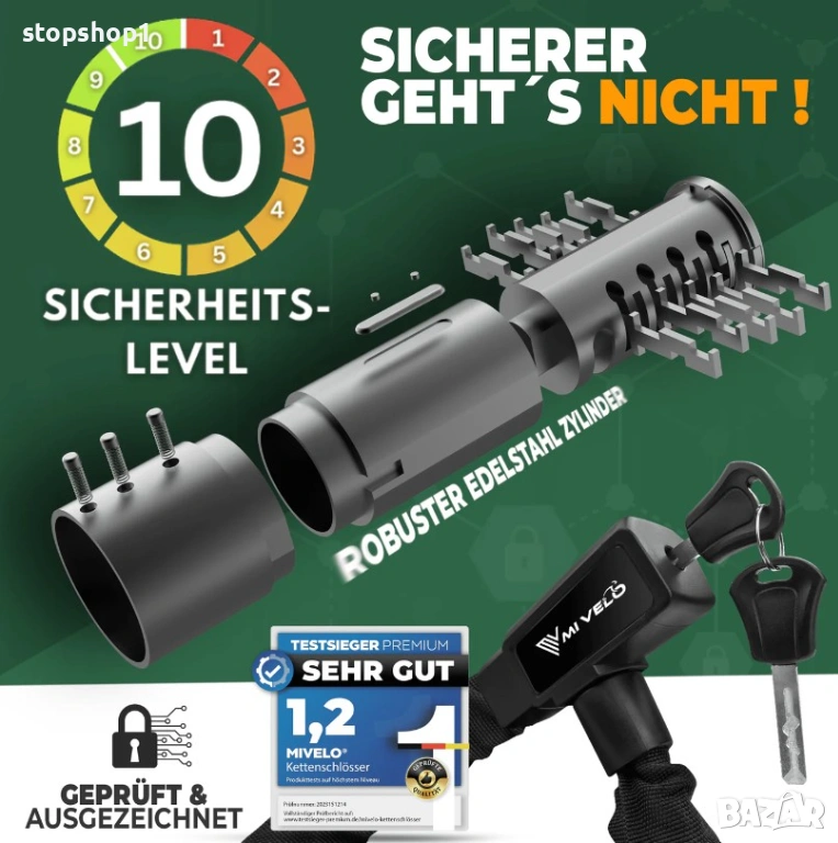 - ВИНАГИ БЕЗОПАСНИ В ДВИЖЕНИЕ - С нашата верижна ключалка (ниво на сигурност 10/10), не е нужно да се притеснявате за вашия велосипед, електрически велосипед или скутер, дори в големи градове с високи рискове за сигурността. Нашият заключващ цилиндър Safe-Secure предлага оптимална защита срещу манипулация без заклещване.