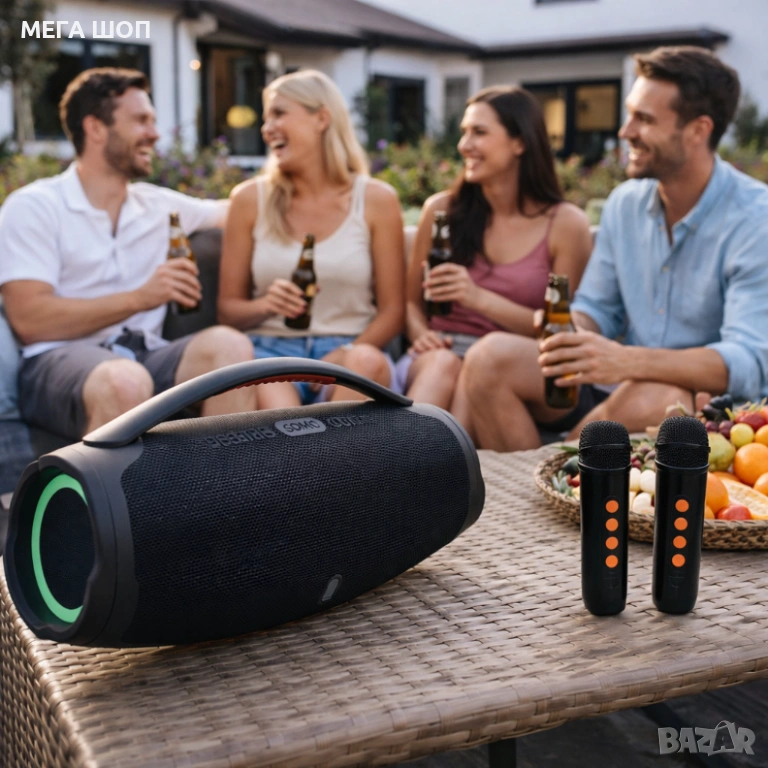 Преносима караоке тонколона с 2 микрофона BOOMBOX - мощен звук и RGB Led осветление