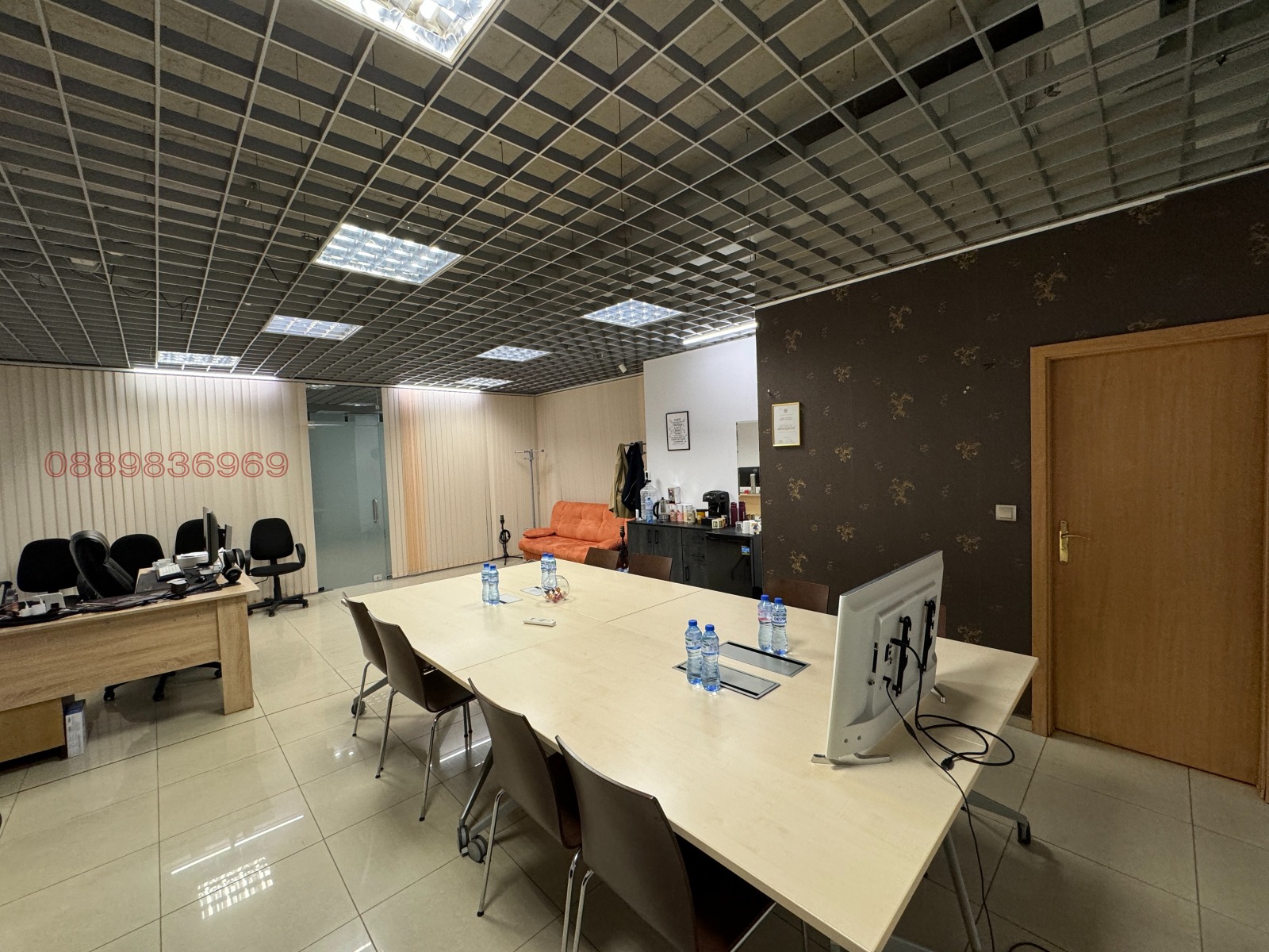 Отдава се под наем обзаведен офис в центъра на Пловдив на 500м. от Площад централен в ТАЦ 'ГРАНД'. Възможно е да се ползва за учебен кабинет, компютърна, счетоводна, проектантска или други фирми. Тъй като има собствен санитарен възел е възможно да се преоборудва за фризьорски или козметичен салон, а също и за лекарски или зъболекарски кабинет. Застроената площ е 49кв.м. без общите части. Допълнително към наема се заплащат около 160 (за които се издава данъчна фактура) за отопление, охлаждане, вентилация, асансьори, ескалатори и поддържане на общите части. Т.е. ако се приеме, че средномесечното отопление и охлаждане на подобно самостоятелно помещение ще е около 100 - реално има едно оскъпяване от около 60 на месец за поддръжката на търговския център.