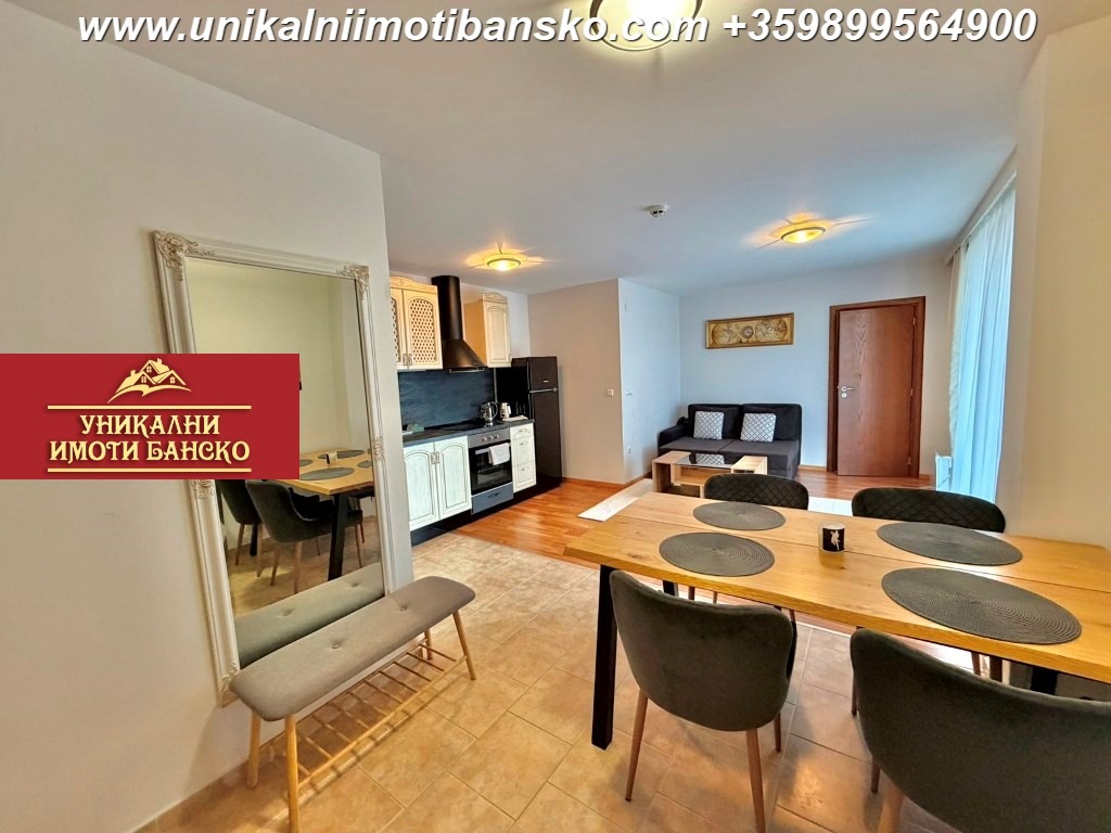 www.unikalniimotibansko.com БЕЗ КОМИСИОННА ОТ КУПУВАЧА! Агенция 'Уникални Имоти Банско' предлага за продажба НАПЪЛНО ОБАЗАВЕДЕН И ГОТОВ ЗА НАНАСЯНЕ ДВУСТАЕН АПАРТАМЕНТ, РАЗПОЛОЖЕН В ЦЕЛОГОДИШНО РАБОТЕЩ КОМПЛЕКС С ОТЛИЧНА ЛОКАЦИЯ - БЛИЗКО ДО СКИ ЛИФТА В БАНСКО, НА ОКОЛО 10 МИНУТИ ПЕША! ОТДЕЛНИ ПАРТИДИ ЗА ТОК И ВОДА! ОТЛИЧНО ПОДДЪРЖАНИ ОБЩИ ЧАСТИ! МОДЕРЕН И УЮТЕН ЛОБИ БАР! Апартаментът е разположен на партерен етаж, като е съставен от преддверие, две преходно разположени стаи и баня, като едната стая е всекидневна с малка тераса, в която има монтиран кухненски бокс, срещу който е поставена трапезна маса и диван с холна масичка, а другата стая е спалня, в която има едно голямо двойно легло и гардероб. Жилището се намира в целогодишно работещ и новопостроен комплекс, който е с отлична локация - намира се на около 10 минути пеша от лифта, като разполага с отделни партиди за ток и вода, модерен и уютен лоби бар, в който се предлага и храна, рецепция, спа център и паркинг. Страхотна инвестиция в имот, който може да ползвате за постоянно живеене, отдаване под наем или ваканционни посещения!