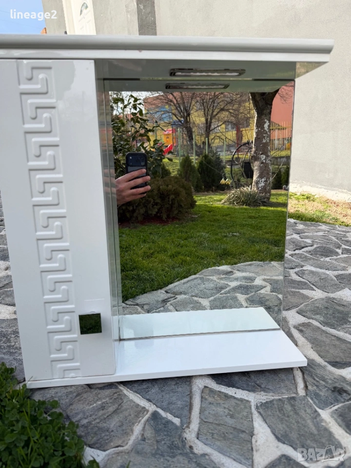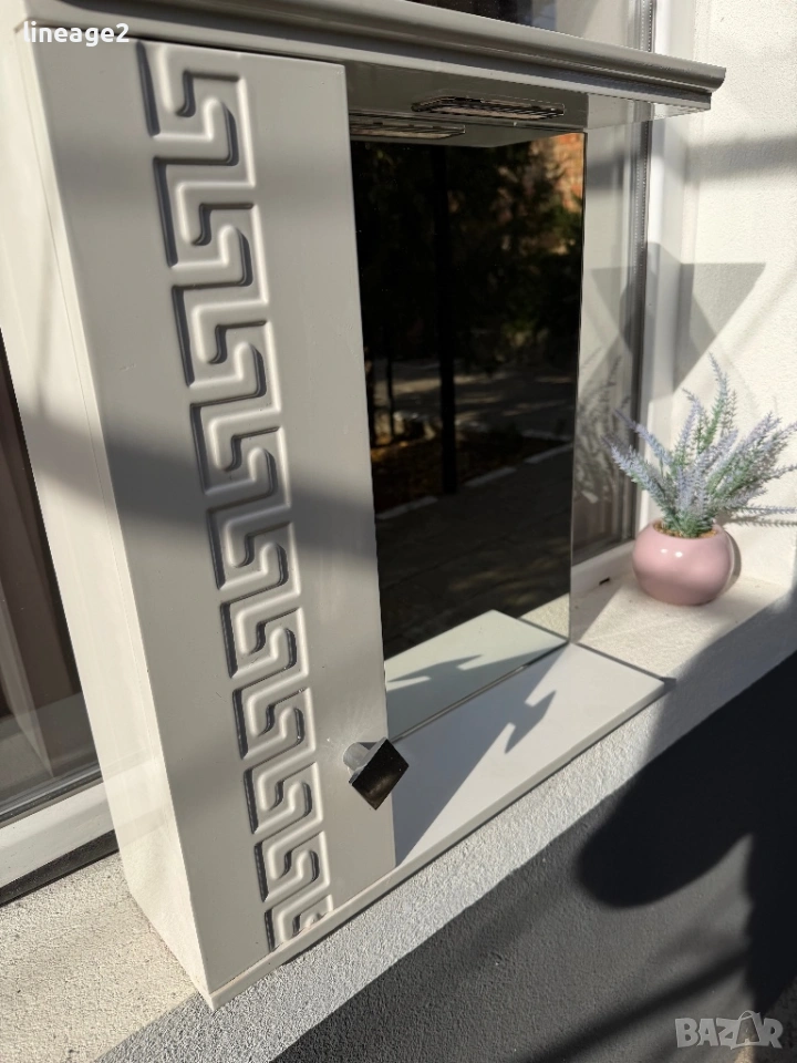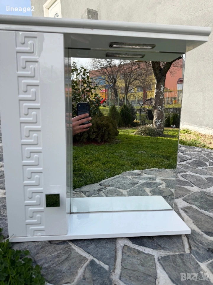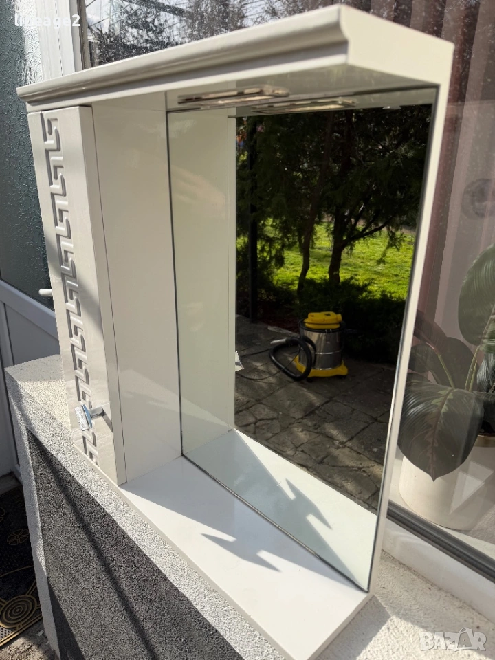 PVC шкаф за баня с огледало 55/60/15 запазена без забележки с осветление изпращам с Еконт