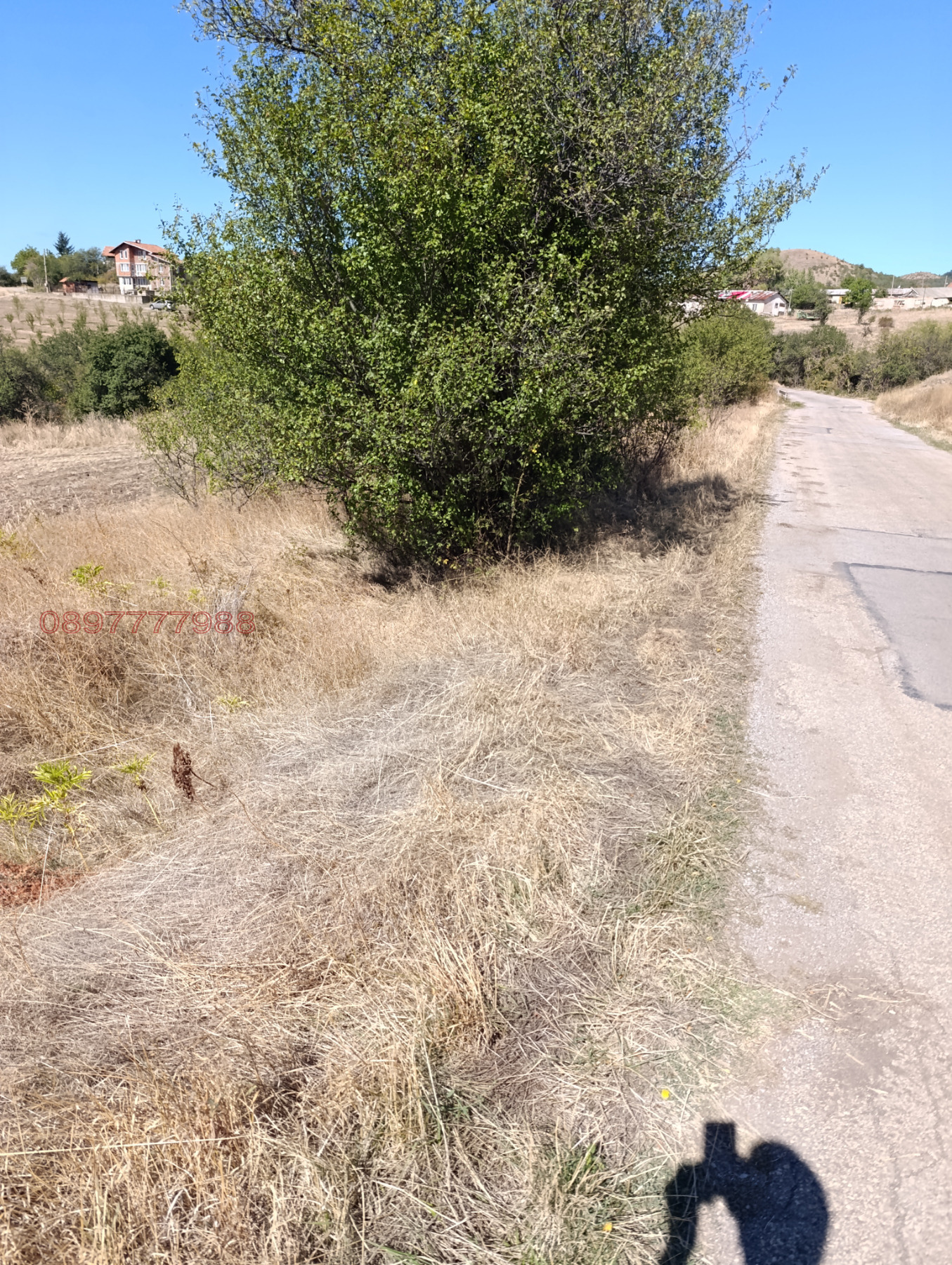 Земята е в началото на селото с лице на асфалтов път от 70 м. В непосредствена близост до къщи. Страхотна панорама. Идентификатор - 11034.35.10.